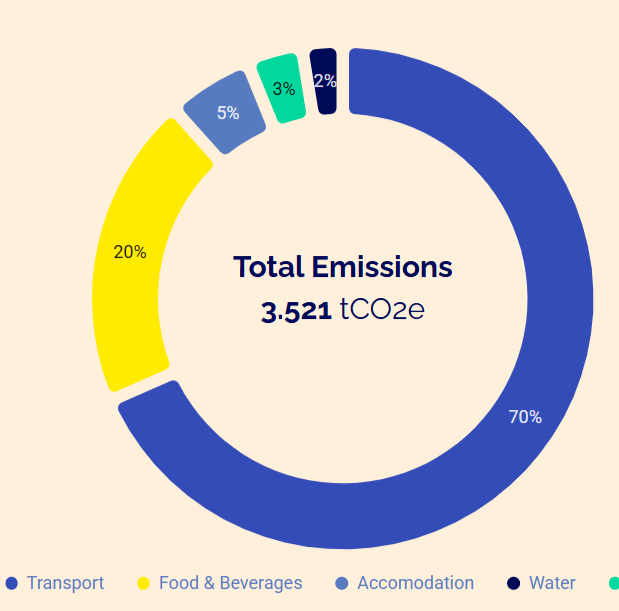 Impacto ambiental total do evento cultural, desportivo ou corporativo.